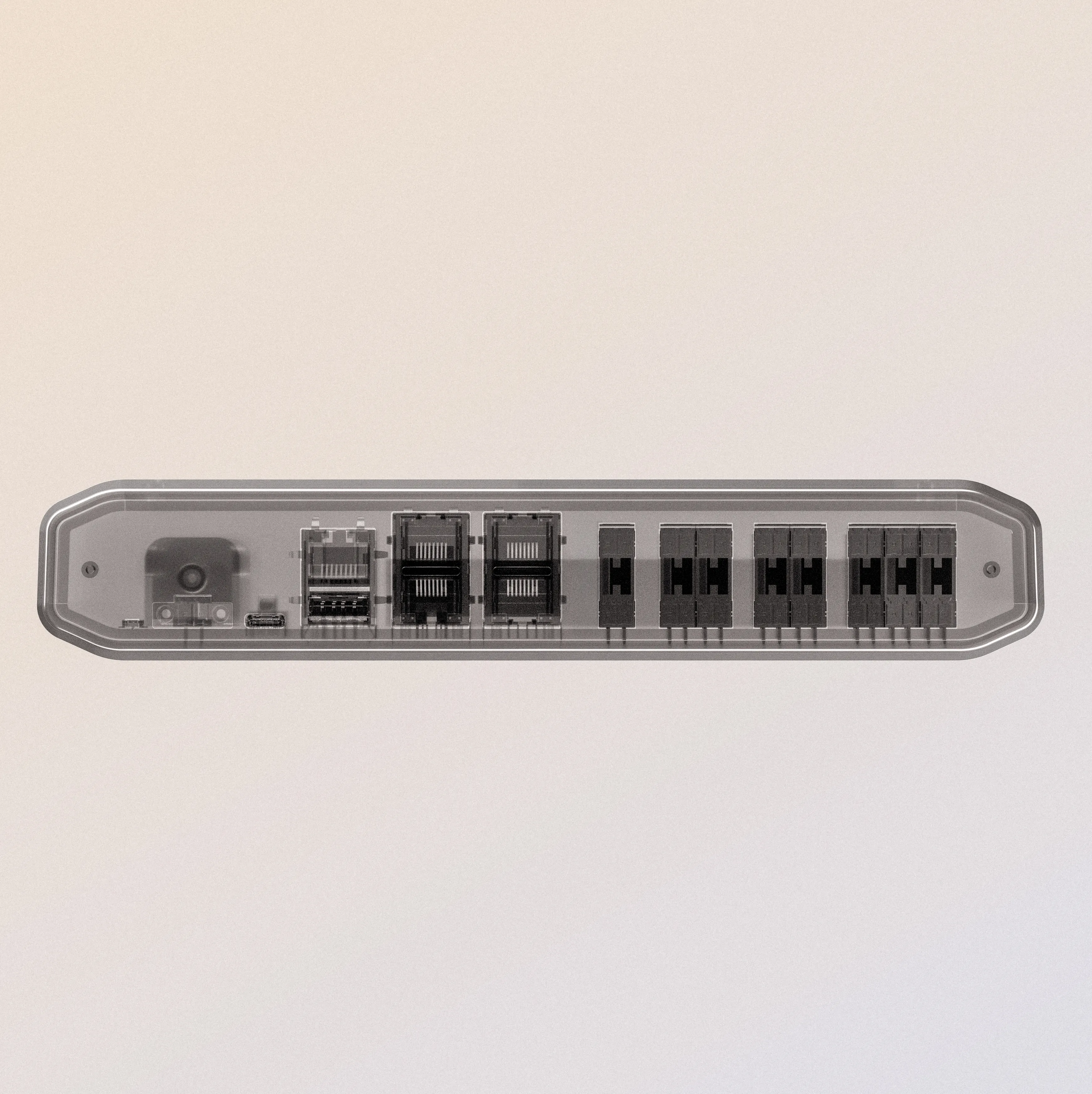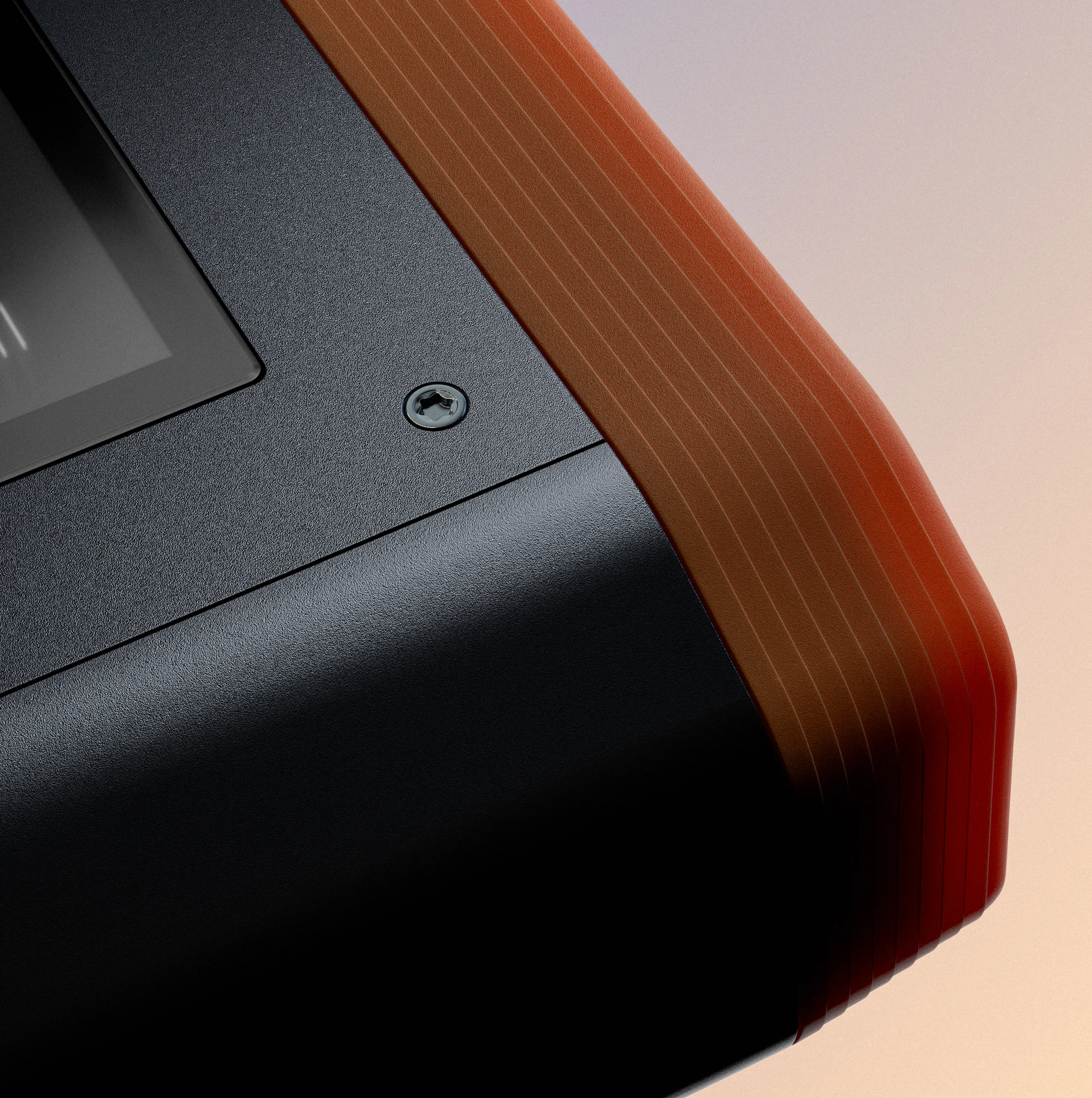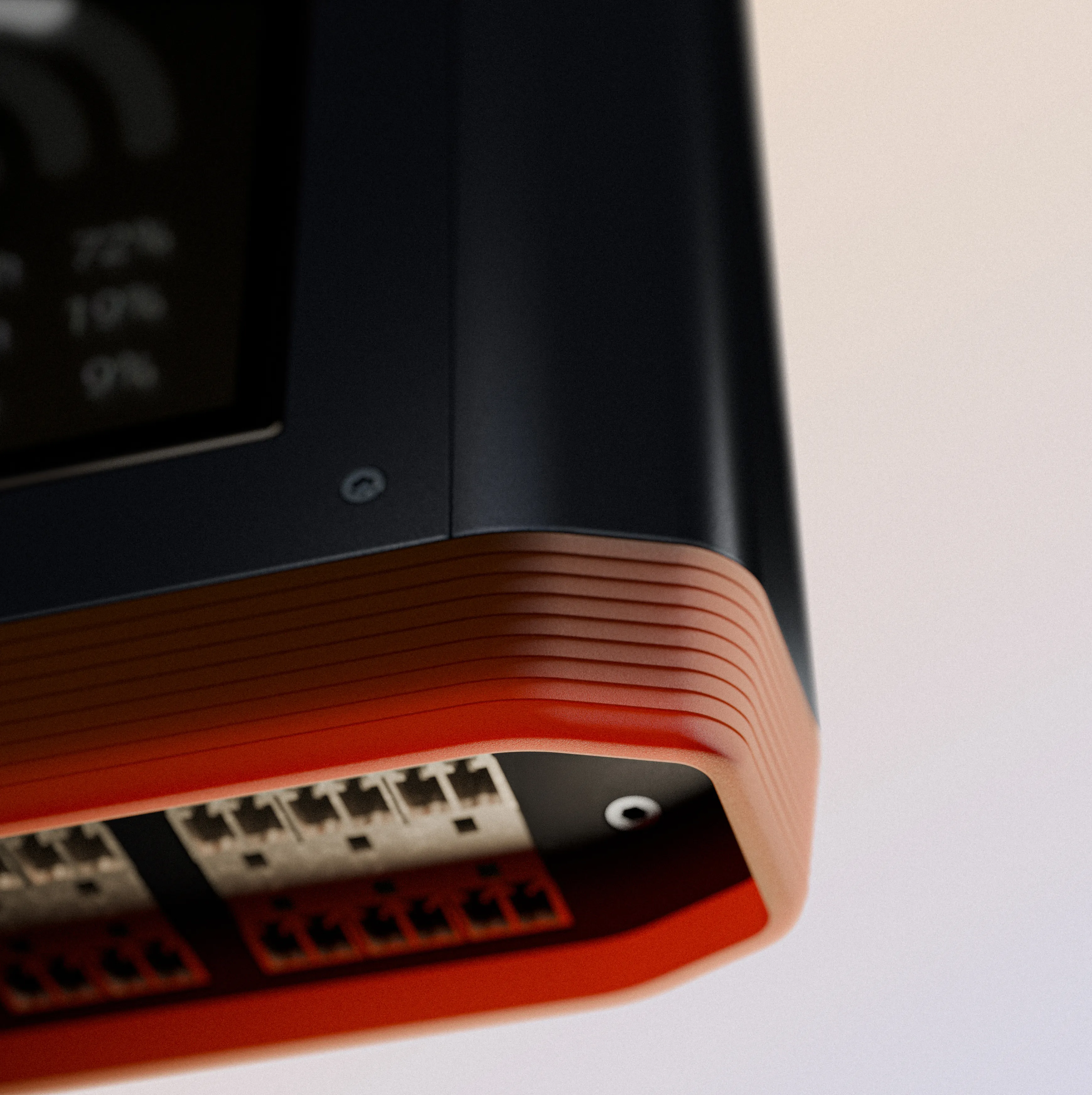 Chamfered Caps made from rigid rubber protect the Cortex 100 while enabling a secure, glove-ready grip. Integrated draft angles simplify tooling, making production lean and cost-efficient. Doubling as a structural feature, the caps hold the I/O plates - allowing them to be manufactured from sheet material and tailored to client needs following first field tests for product validation.