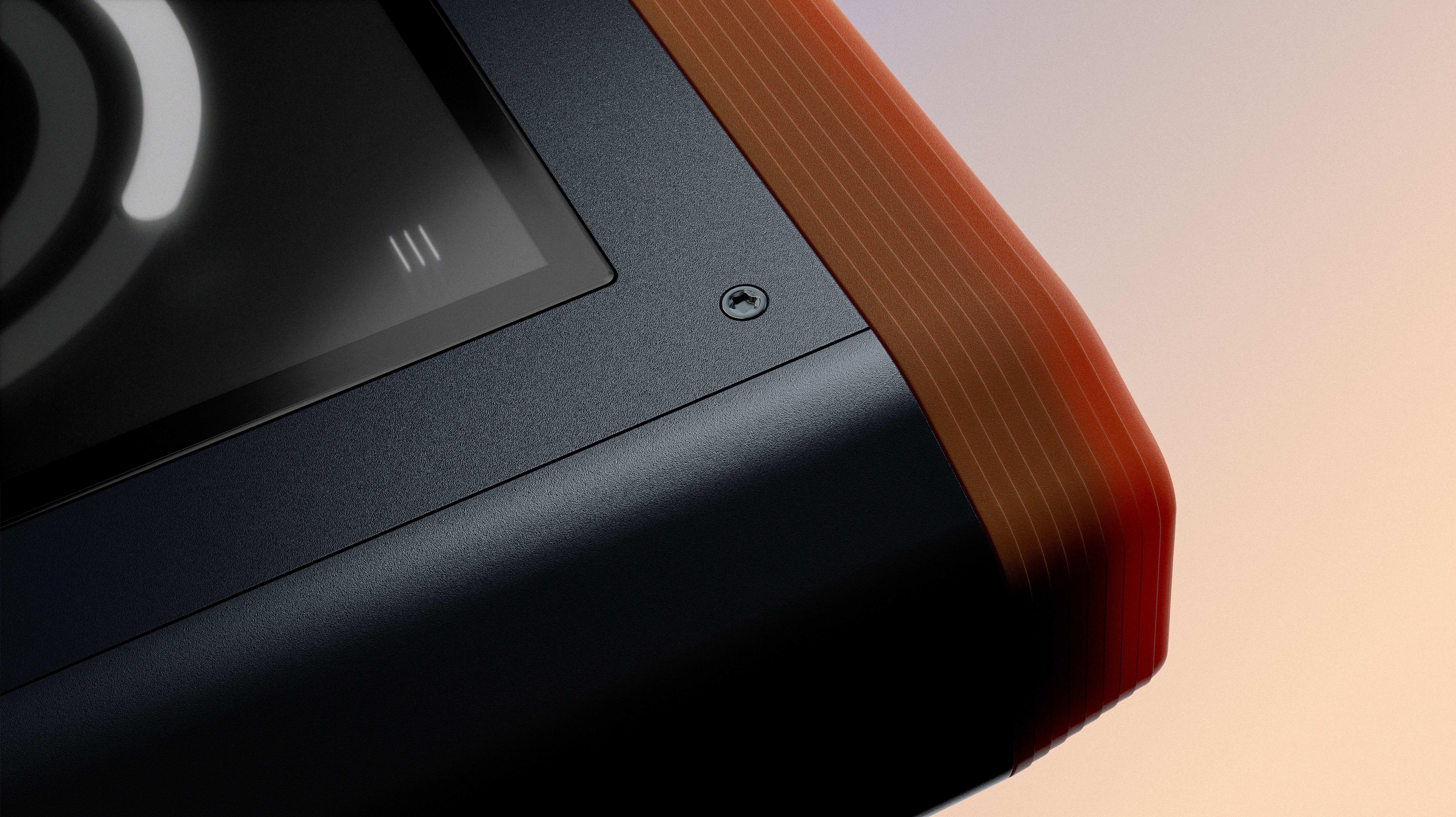 Chamfered Caps made from rigid rubber protect the Cortex 100 while enabling a secure, glove-ready grip. Integrated draft angles simplify tooling, making production lean and cost-efficient. Doubling as a structural feature, the caps hold the I/O plates - allowing them to be manufactured from sheet material and tailored to client needs following first field tests for product validation.